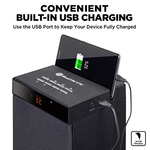 Device Dock + USB Power Port: Conveniently place your phone or tablet in the dock slot and utilize the USB 1A power port to keep your device charged and running while streaming your favorite tunes.