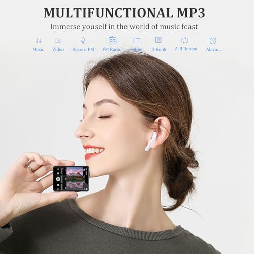 Bluetooth 5.2 Technology: Enjoy seamless and stable Bluetooth connectivity with lower power consumption. Easily pair the player with Bluetooth headphones or speakers. High Capacity & Long Playback: With 32GB of built-in memory, this player can store up to 6000 songs. Optionally expand your storage up to 128GB with an additional memory card (not included). Enjoy up to 40 hours of playback on a full charge within just 2 hours using the Type-C charging cable. Compact & Portable: The 2.4-inch touch screen allows for easy operation. Its compact size fits easily into your wallet, pocket, or armband, making it perfect for running, jogging, traveling, and hiking. Exceptional Sound Quality: Equipped with a powerful audio decoding chip, it delivers HiFi-level sound close to the original. Supports multiple audio formats including MP3, WMA, OGG, WAV, APE, FLAC, AAC-LC, and ACELP. The built-in speaker lets you enjoy music without headphones. Multifunctional Use: Beyond music, this MP3 player supports video playback, voice recording, FM radio, photo browsing, e-books (TXT format only), and more. It's the perfect device to enjoy your favorite content while staying on the go.