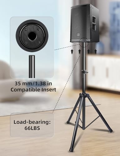 Height Adjustable Speaker Tripod: Adjust the height from 35 inches to 60 inches with the telescoping center column. Supports up to 66 lbs for secure speaker placement.