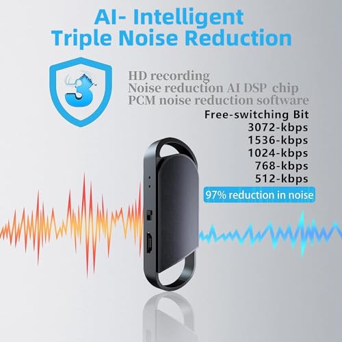 Experience the pinnacle of clarity with our state-of-the-art voice recorder! Utilizing triple digital DSP chip noise reduction technology and a stereo microphone, it reduces ambient noise by 90%, delivering HD stereo recordings with unparalleled quality. Need different sound clarity for different situations? With 3072Kbps Max HD recording, you can easily adjust the bit rate to meet your specific needs.