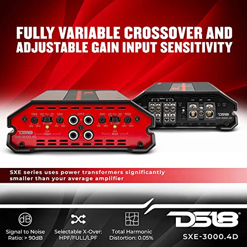 Title: DS18 SXE-3000.4D/BK Car Amplifier Stereo Full-Range Class D 4-Channel 200x4 RMS @4 OHM 3000 Watts - Powerful and Compact Amp for Speakers in Car Audio System